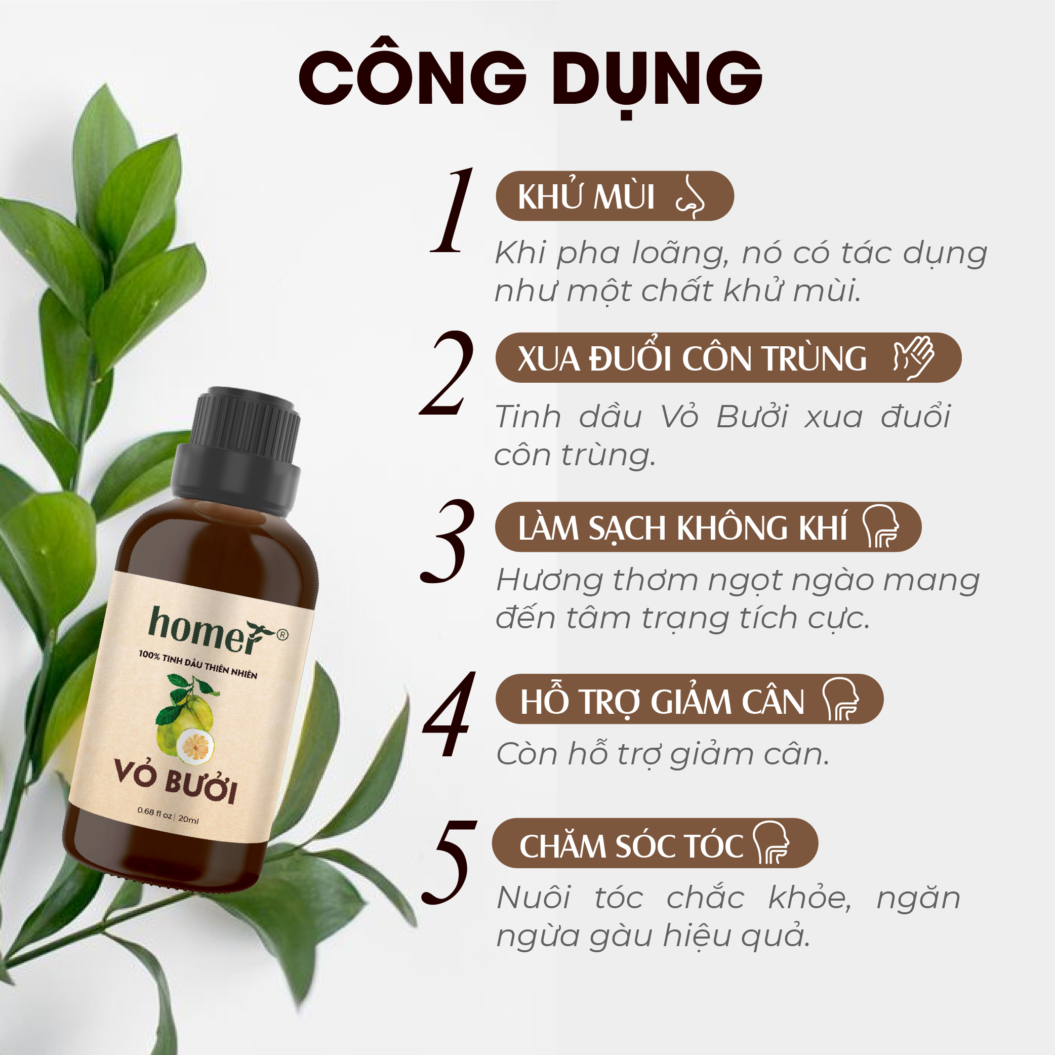 Tinh dầu Vỏ Bưởi Homer 100ML - Chính Hãng, Đạt Chuẩn Kiểm Định Cao Cấp - Tinh Dầu Xông Thơm Phòng, Thư Giãn, Khử Mùi hiệu quả