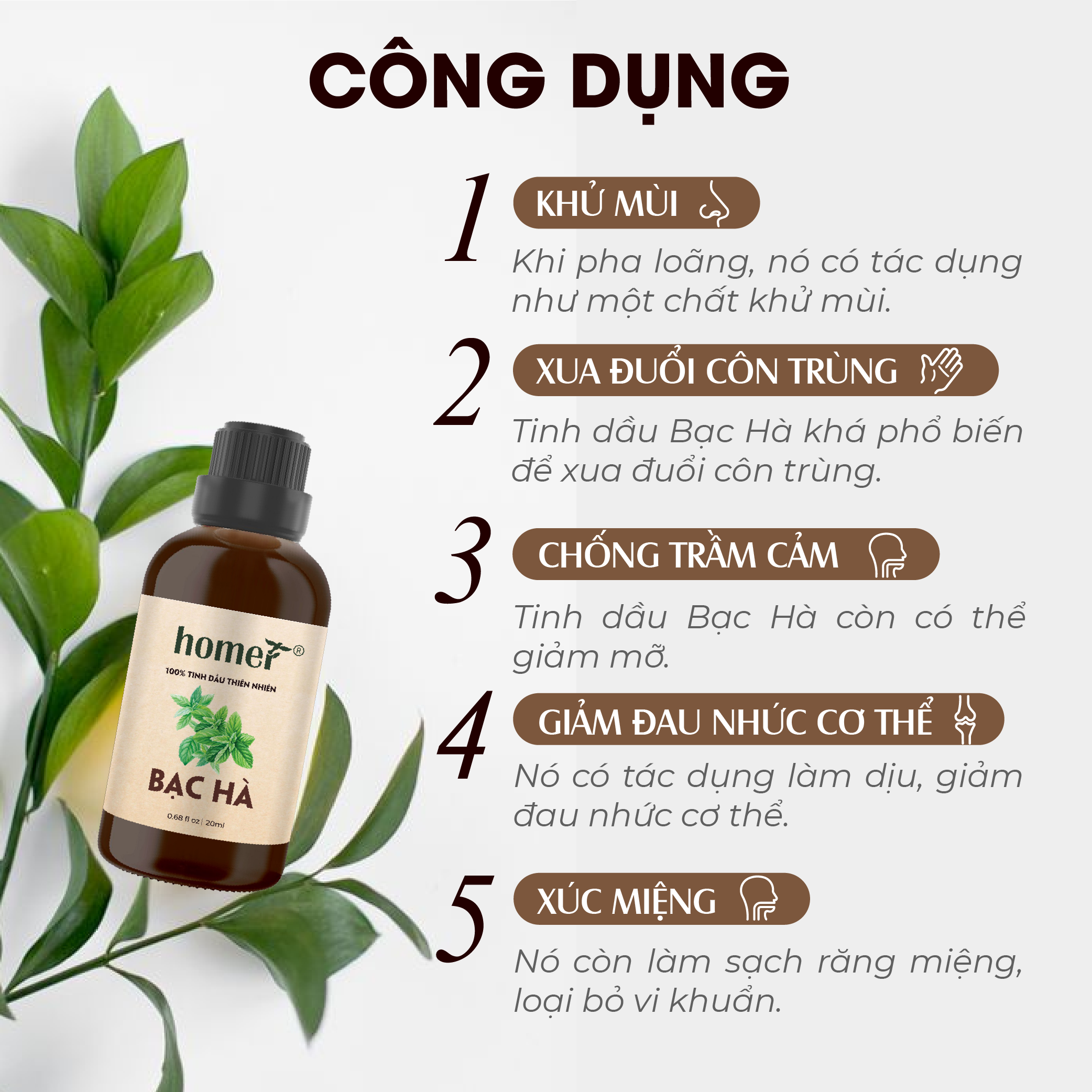 Tinh Dầu Bạc Hà Homer - Tinh Dầu Xông Thơm Phòng, Thư Giãn, Khử Mùi - Tinh dầu Sả Chanh/ Vỏ Quế/ Cam Ngọt/ Oải hương/ Ngọc Lan Tây/ Tràm Trà/ Bưởi Ngọt