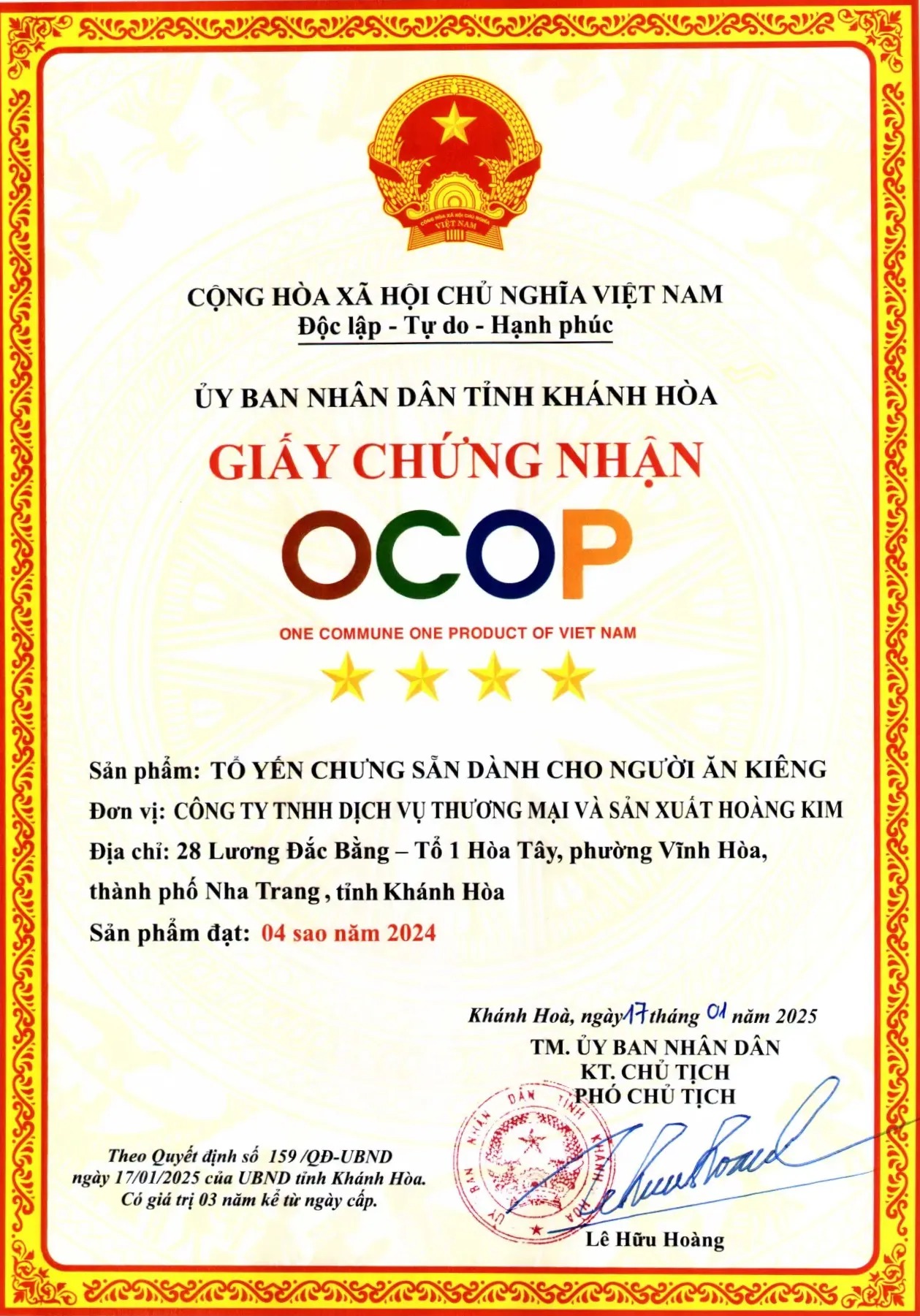 - Chất Lượng Được Nhà Nước Bảo Chứng OCOP 4 Sao: Được UBND tỉnh Khánh Hòa chứng nhận OCOP 4 sao năm 2024, khẳng định chất lượng và độ an toàn của sản phẩm.