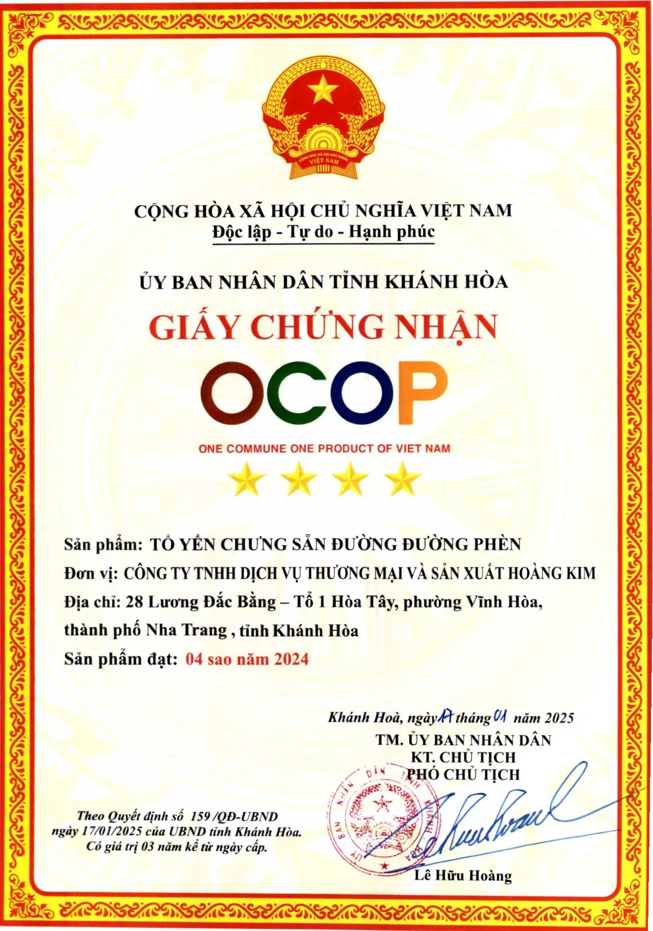 Chất Lượng OCOP 4 Sao Tỉnh Khánh Hòa: Sản phẩm vinh dự được UBND tỉnh Khánh Hòa chứng nhận OCOP 4 sao năm 2024. Đây là sự bảo chứng của cơ quan nhà nước về một sản phẩm địa phương có chất lượng vượt trội và nguồn gốc rõ ràng.