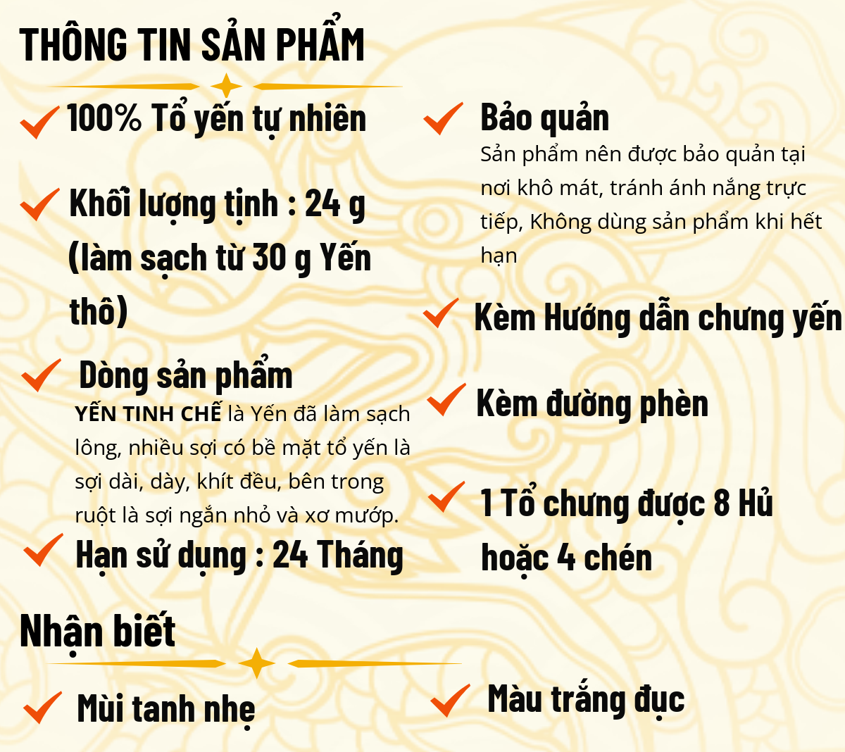 Tổ Yến Sào Tinh Chế (3 Tổ/24g/Hộp) (Tổ Yến làm sạch/Tổ Yến Sạch chế biến từ Tổ Yến Thô /Tổ Yến còn lông) Yến Sào Trung Nam