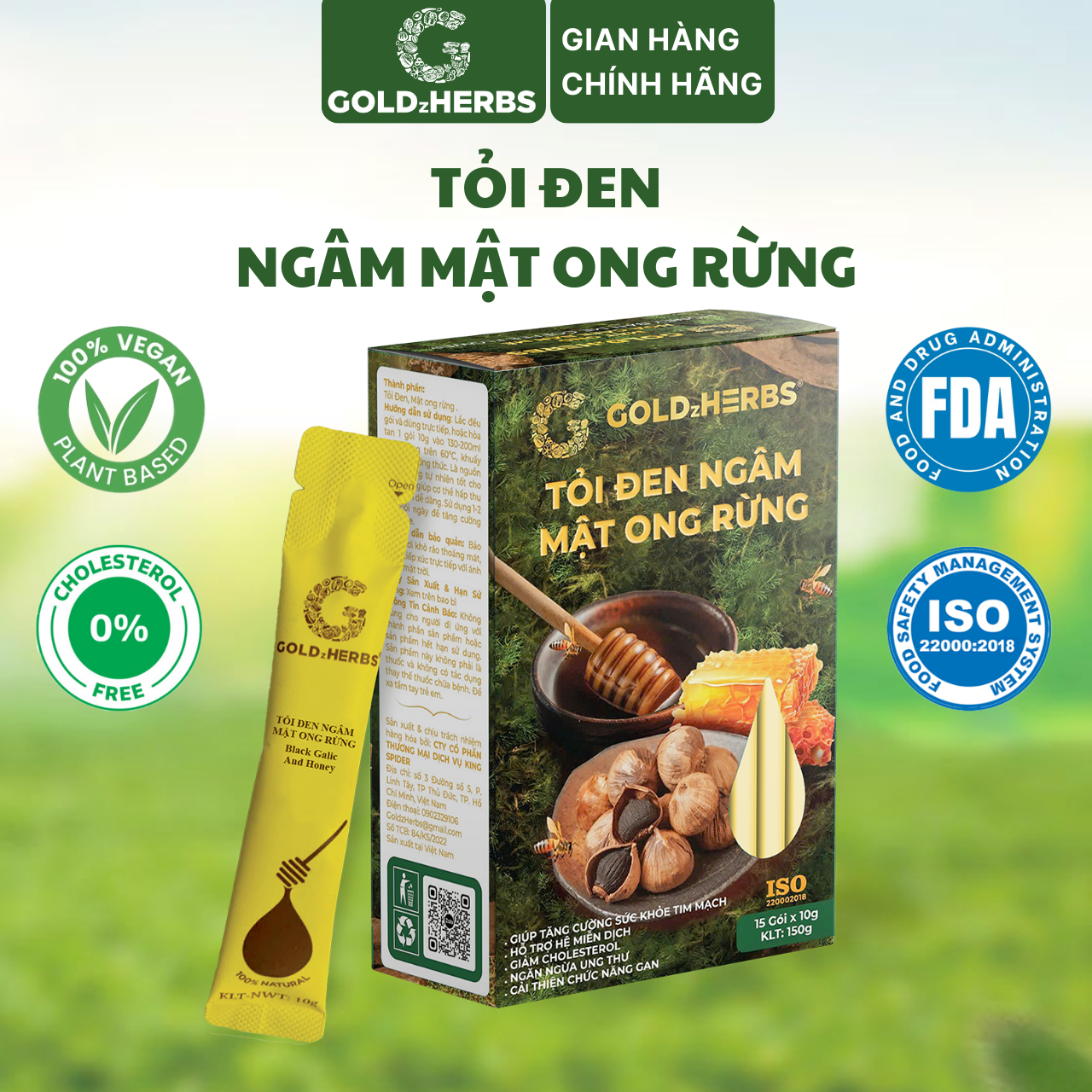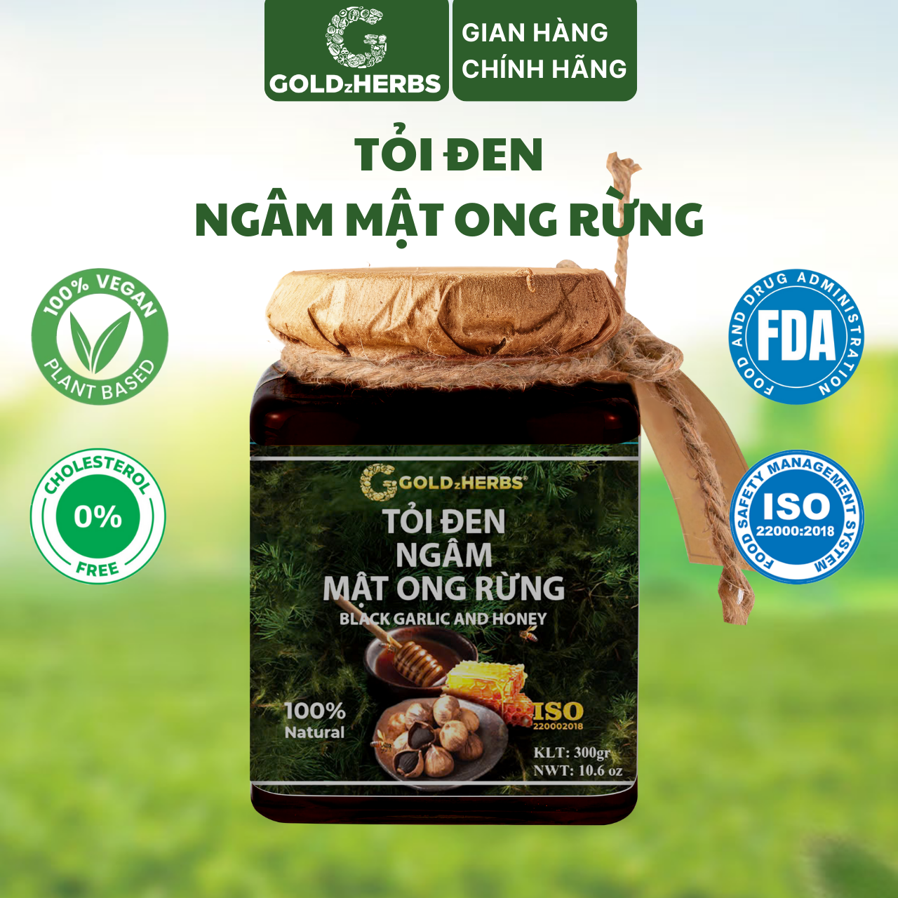 Tỏi đen ngâm mật ong rừng GoldzHerbs, 100% mật ong nguyên chất – Hũ 300g/ Hộp 15 gói