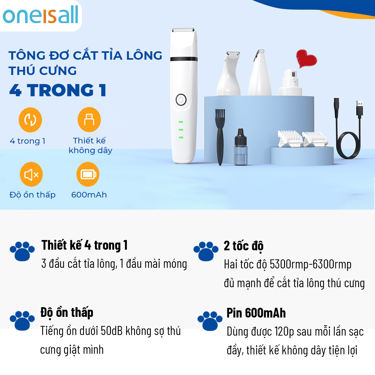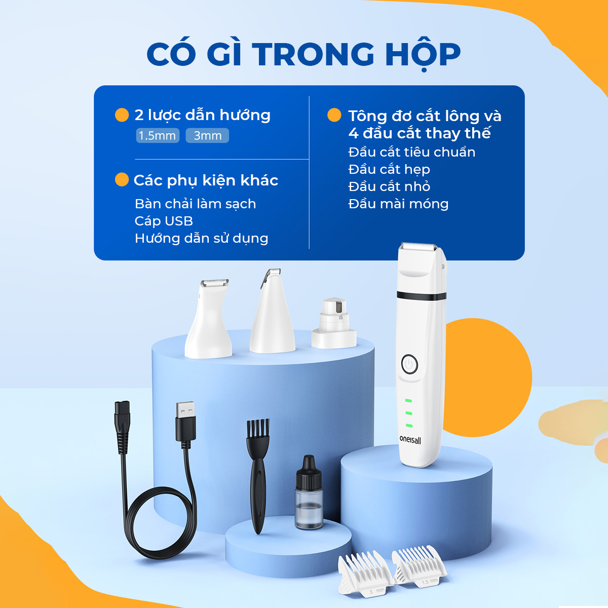 Tông đơ cắt tỉa lông thú cưng 4 trong 1 Oneisall N12 2 tốc độ - Hàng Chính Hãng