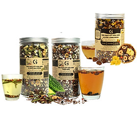 Combo 3 Hộp Trà Gạo Lứt Đậu Đen Gufoods Vị Thảo Mộc, Khổ Qua Rừng, Cúc Long Nhãn (Mỗi Hộp 500g) - Thanh Mát, Ngủ Ngon, Giải Nhiệt, Tốt Cho Sức Khỏe