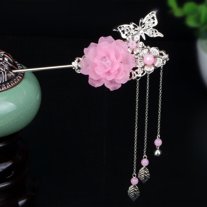 Trâm cài tóc cổ trang hoa và cánh bướm nhiều màu sắc