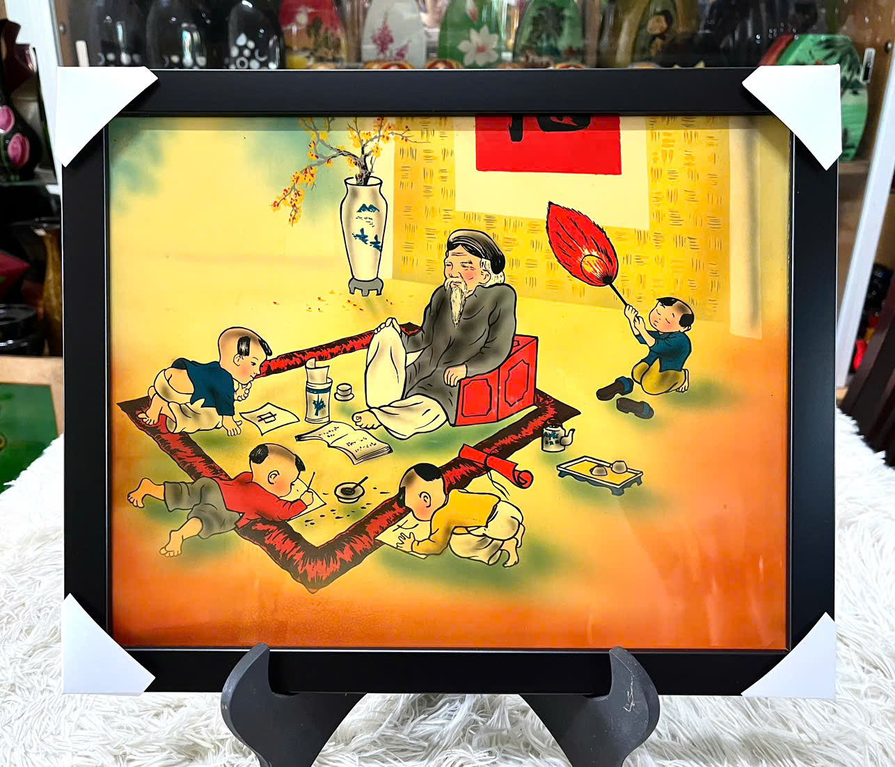Tranh sơn mài cao cấp Thanh Bình Lê Thầy đồ 30x40 cm