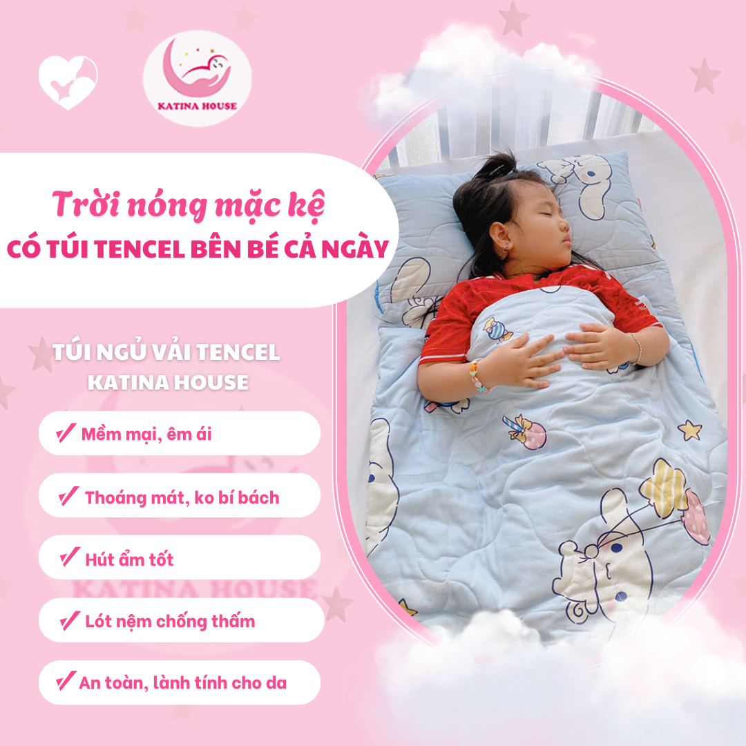 Túi ngủ cho trẻ em Katina House 60x175cm, vải tencel mềm mịn, thoáng mát