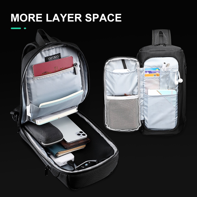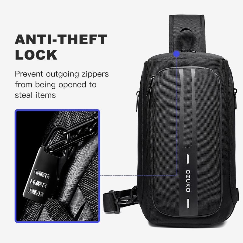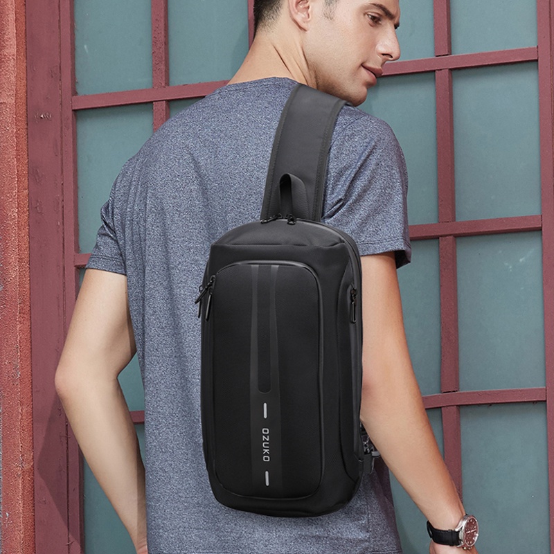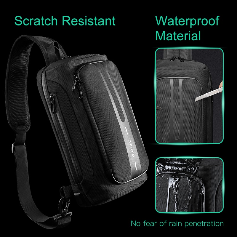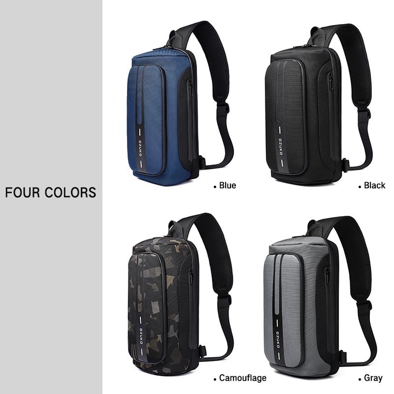 Túi xách đeo chéo vai OZUKO chống trộm và nước có cổng sạc USB tiện dụng