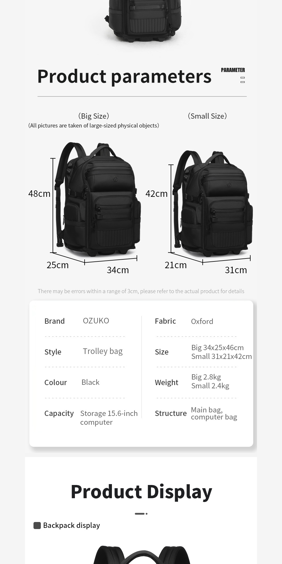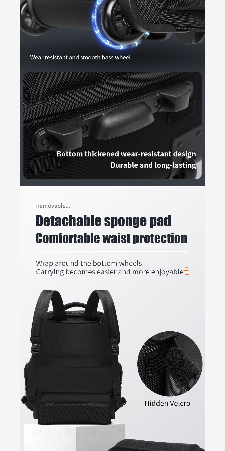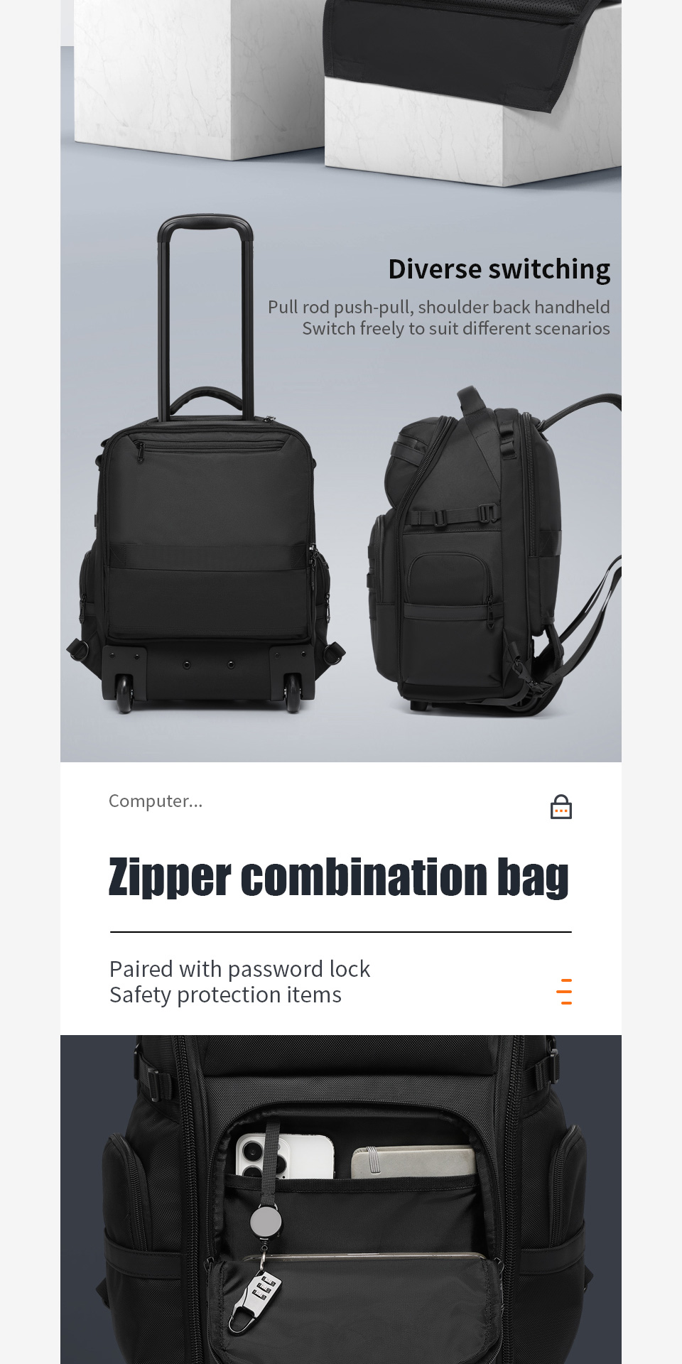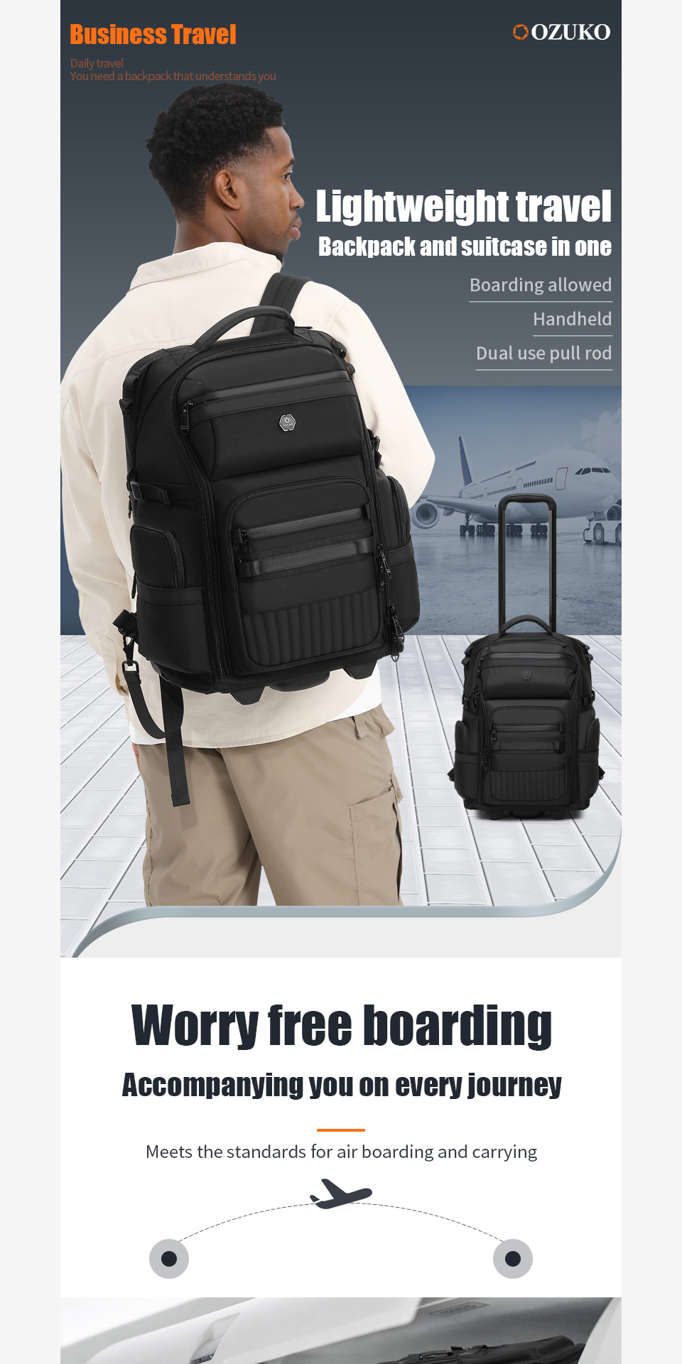 Túi Xe Đẩy OZUKO 2 Bánh Xe Dung Tích Lớn Nhiều Túi Ba Lô Chống Thấm Nước Kinh Doanh Du Lịch Hành Lý