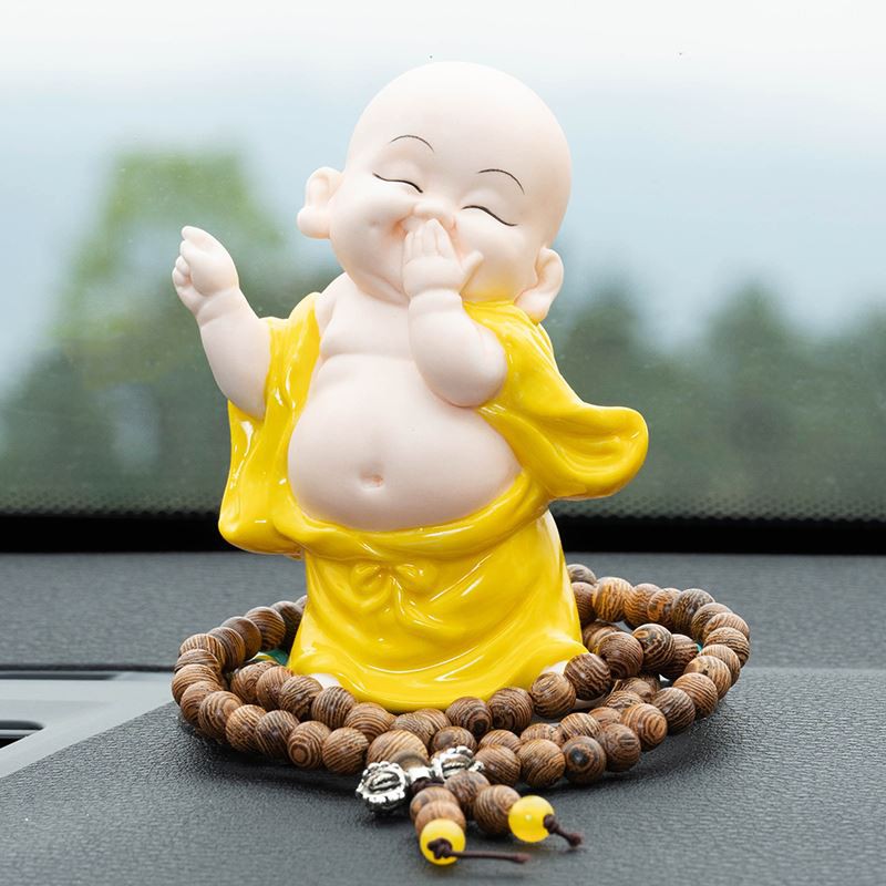 Tượng Chú Tiểu Gốm Hoan Hỉ Sắc thái vui tươi, hoan hỉ và lạc quan, tượng gốm chất liệu gốm cao cấp thủ công , đường nét rõ ràng sắc nét. Trang trí tiểu cảnh , để xe hơi