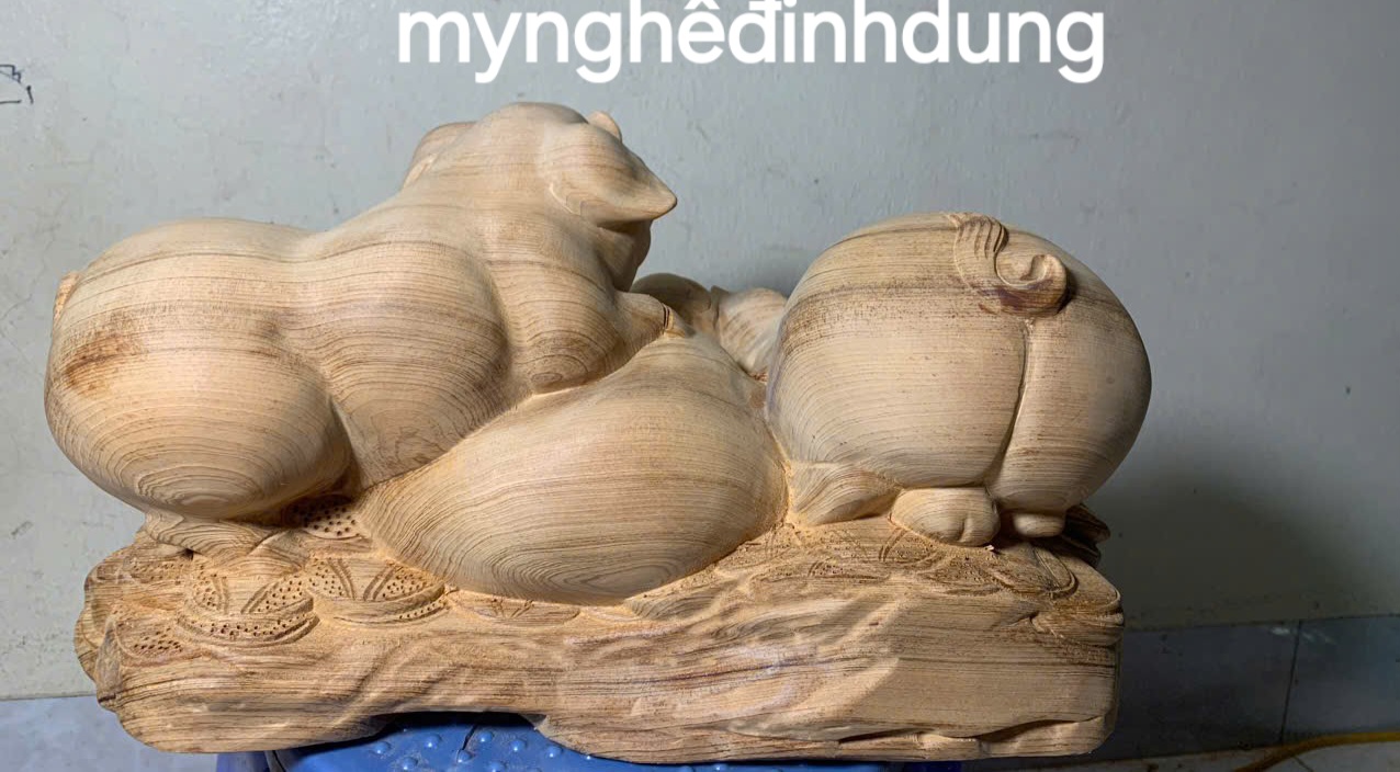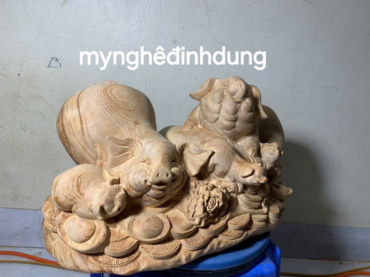 _ Tượng gia đình lợn phong thủy cầu tài lộc được làm bằng chất liệu gỗ trắc ngọc Am thơm nức liền khối tự nhiên 100%