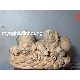 Tượng gia đình lợn phong thủy bằng gỗ ngọc Am thơm nức 39x18x22cm