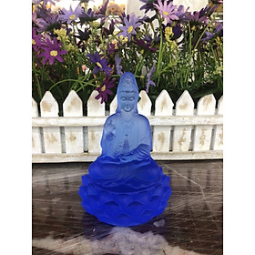 Tượng Phật quan âm ngồi đài sen đá lưu ly - Cao 12 cm