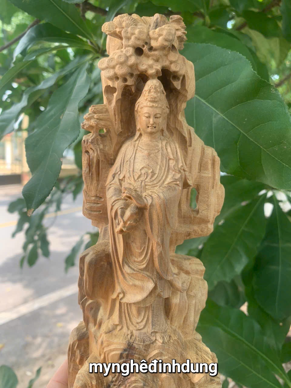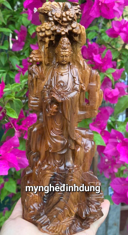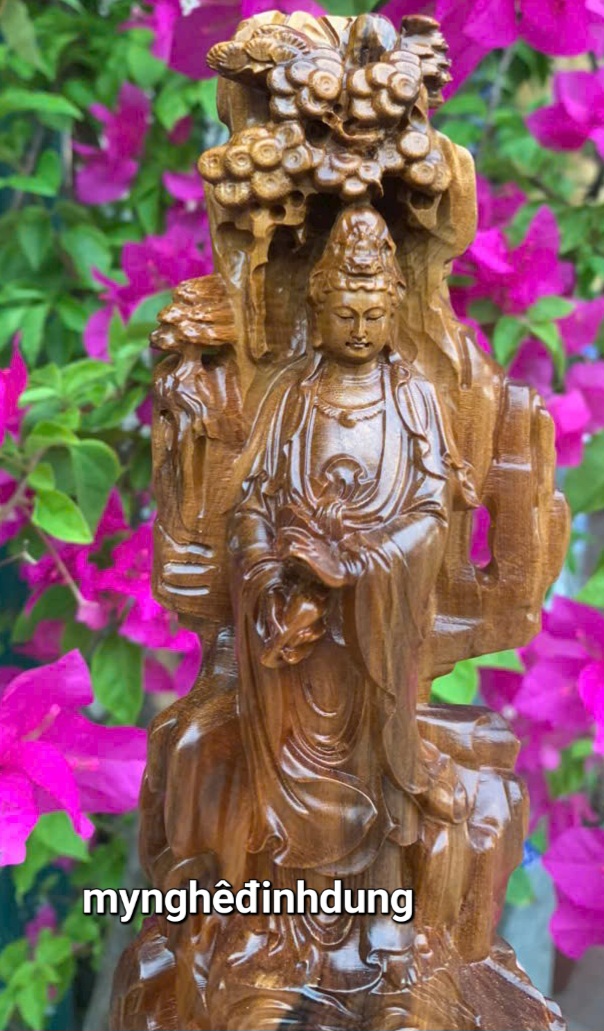 _ Tượng phật quan âm bồ tát nam hải được làm bằng chất liệu gỗ bách xanh liền khối tự nhiên 100%