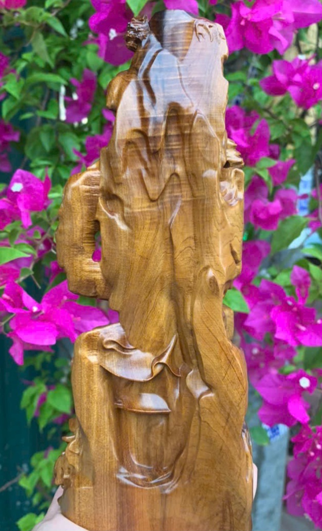 _ Tượng được chạm khắc gọt tỉa vô cùng tỉ mỉ tinh xảo kỳ công. Đi hầu hết tất mọi chi tiết góc ngách nội dung hoa văn của tượng đều được gọt tỉa chỉnh sửa sắc nét hoàn toàn bằng tay thủ công truyền thống ...