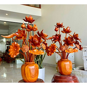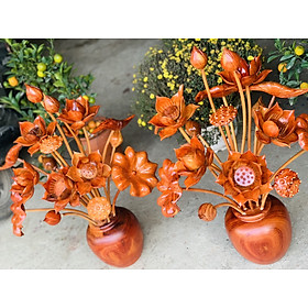 2 Bình hoa sen gỗ hương đỏ 17 bông ,trang trí phòng khách ,phòng thờ siêu đẹp