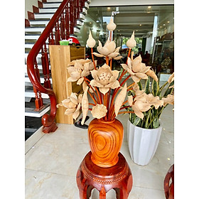 2 Bình hoa sen bằng gỗ ngọc am ,15 cành ,trang trí phòng khách ,phòng thờ đẹp long lanh