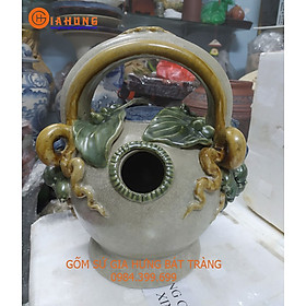 Bình vôi men rạn đắp trầu cau cao 29cm