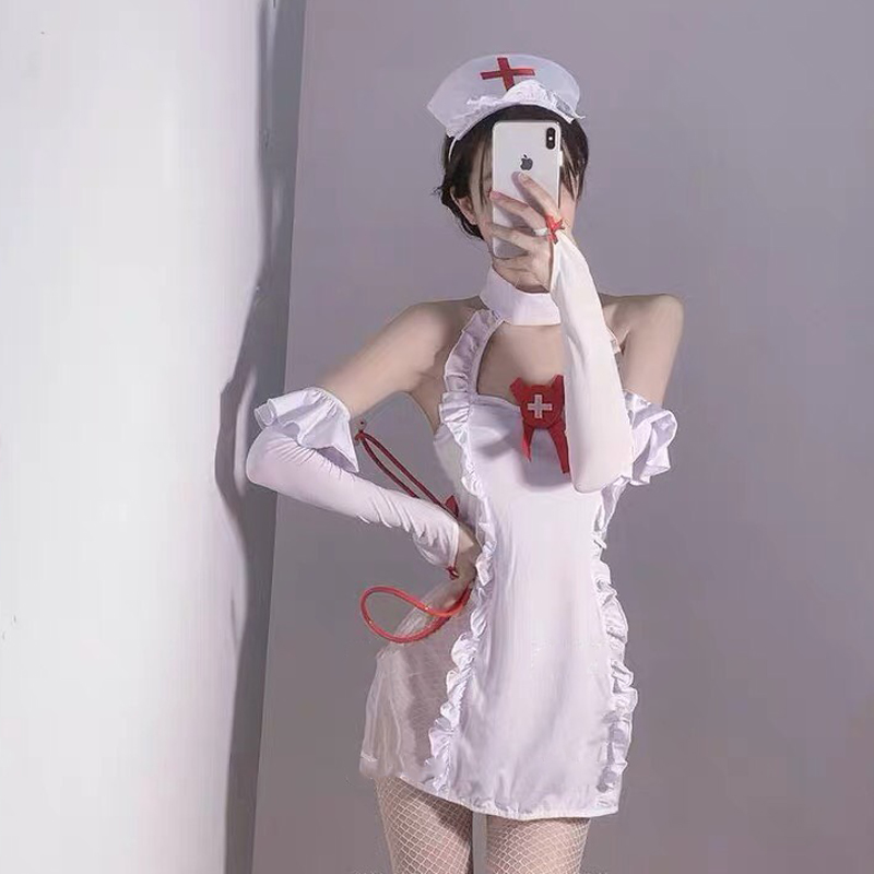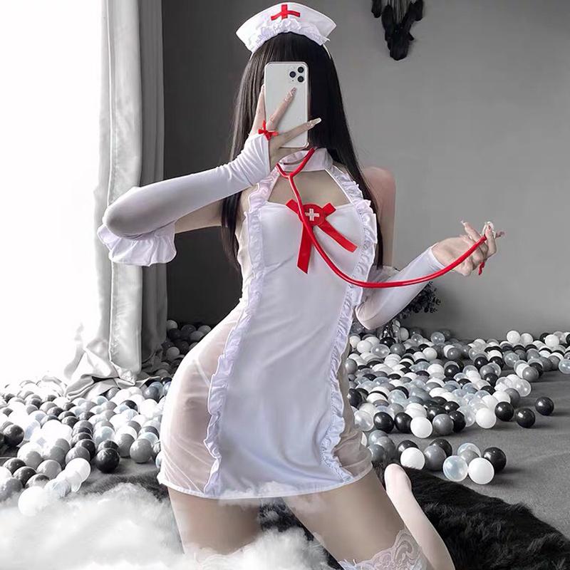 Váy ngủ cosplay y tá kèm cài tóc và găng tay Q513 - Đầm ngủ nữ cosplay gợi cảm - Đồ ngủ nữ sexy