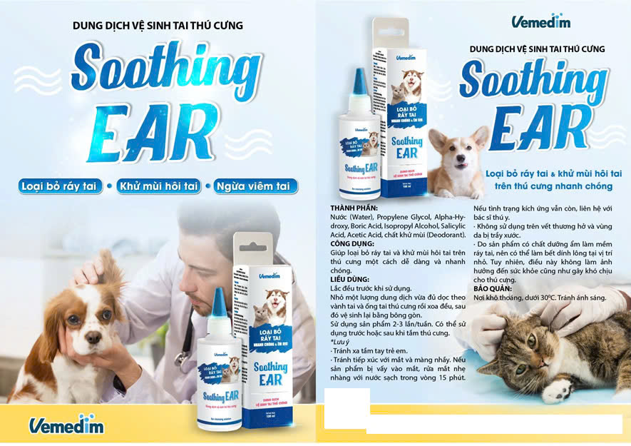 Vemedim Soothing Ear Nước Vệ Sinh Tai, Khử Mùi Hôi Tai cho Chó Meo - Chai 100ml