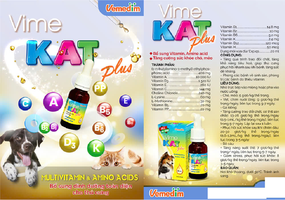 Vemedim Vimekat plus chứa vitamin và amino acid, tăng cường sức khỏe chó, mèo, chim cảnh, gá đá, chai 20ml