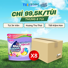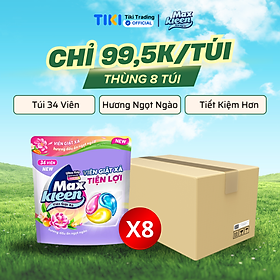 Thùng 8 túi Maxkleen Viên giặt xả Ngọt ngào 15g Túi 34 viên