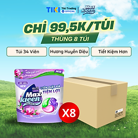 Thùng 8 túi Maxkleen Viên giặt xả Hương Nước Hoa Huyền Diệu Túi 34 viên