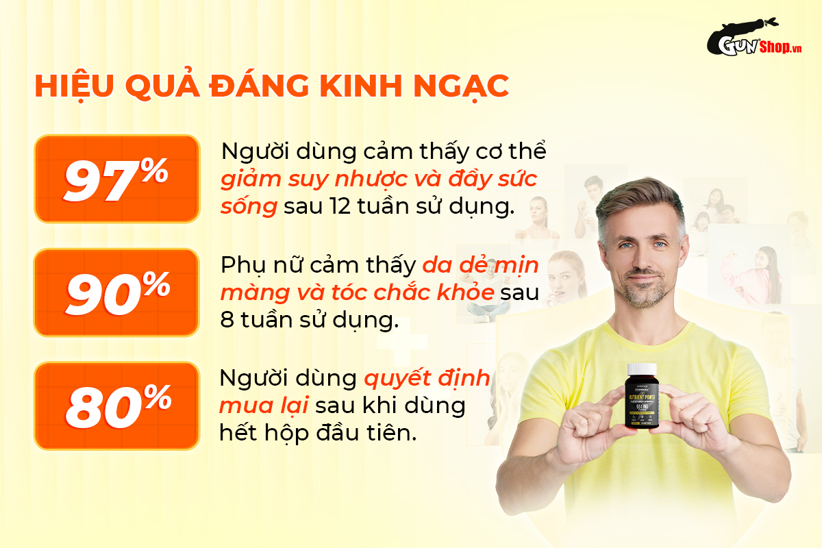 - Đặc điểm: Bổ sung 8 loại vitamin và 3 khoáng chất để cơ thể khoẻ mạnh, hỗ trợ tăng cường hệ miễn dịch, tăng cường sức đề kháng và nâng cao sức khỏe tổng thể. Tái tạo tế bào và tăng khả năng hấp thụ, cải thiện tình trạng mệt mỏi.