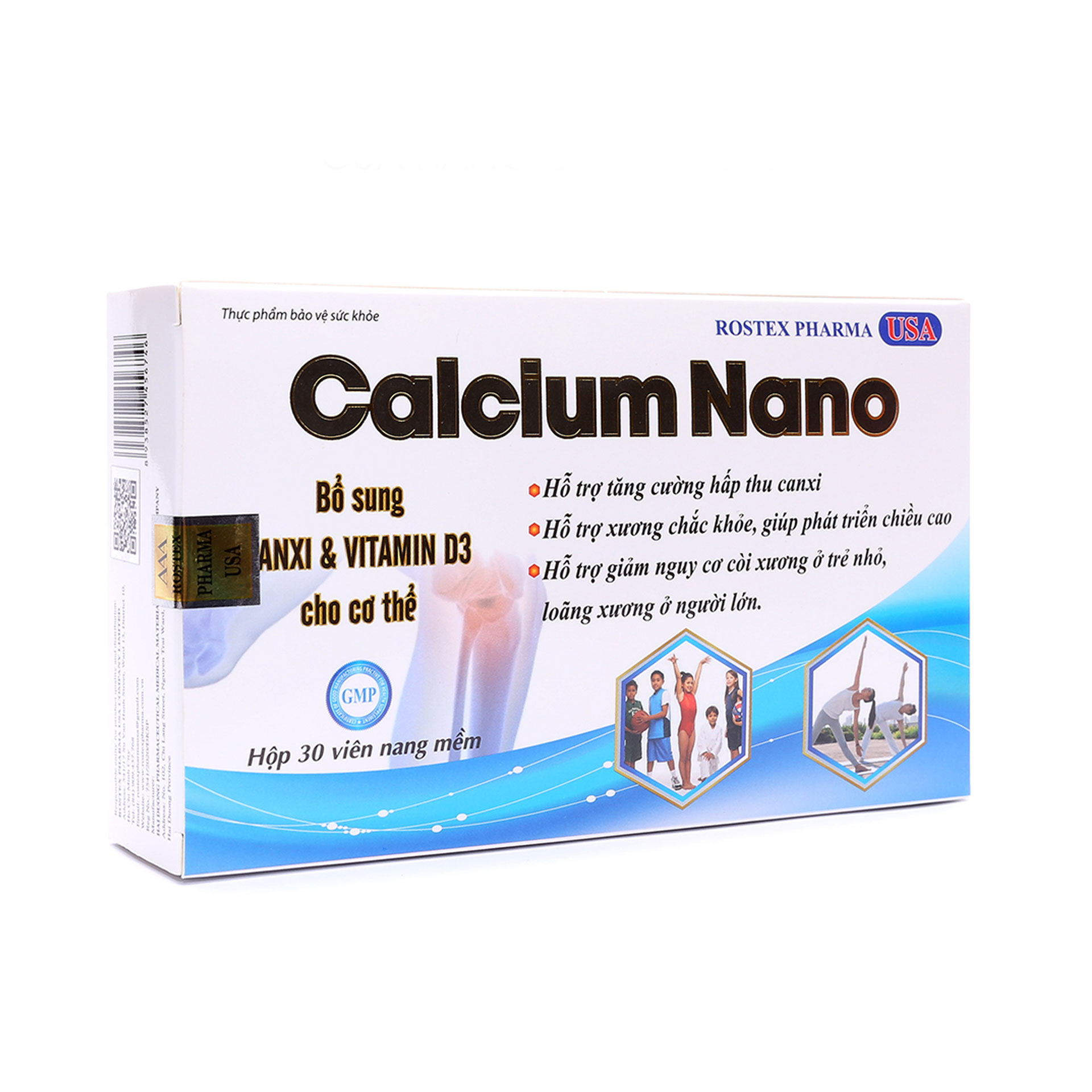 Viên uống Calcium Nano giúp chắc khỏe xương, phát triển chiều cao, ngăn ngừa loãng xương - Hộp 30 viên