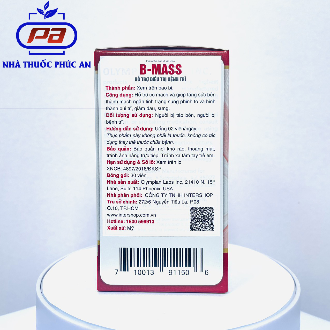 Viên Uống Hỗ Trợ Điều Trị Trĩ, Táo Bón B-Mass Olympian Labs Mỹ 30 Viên