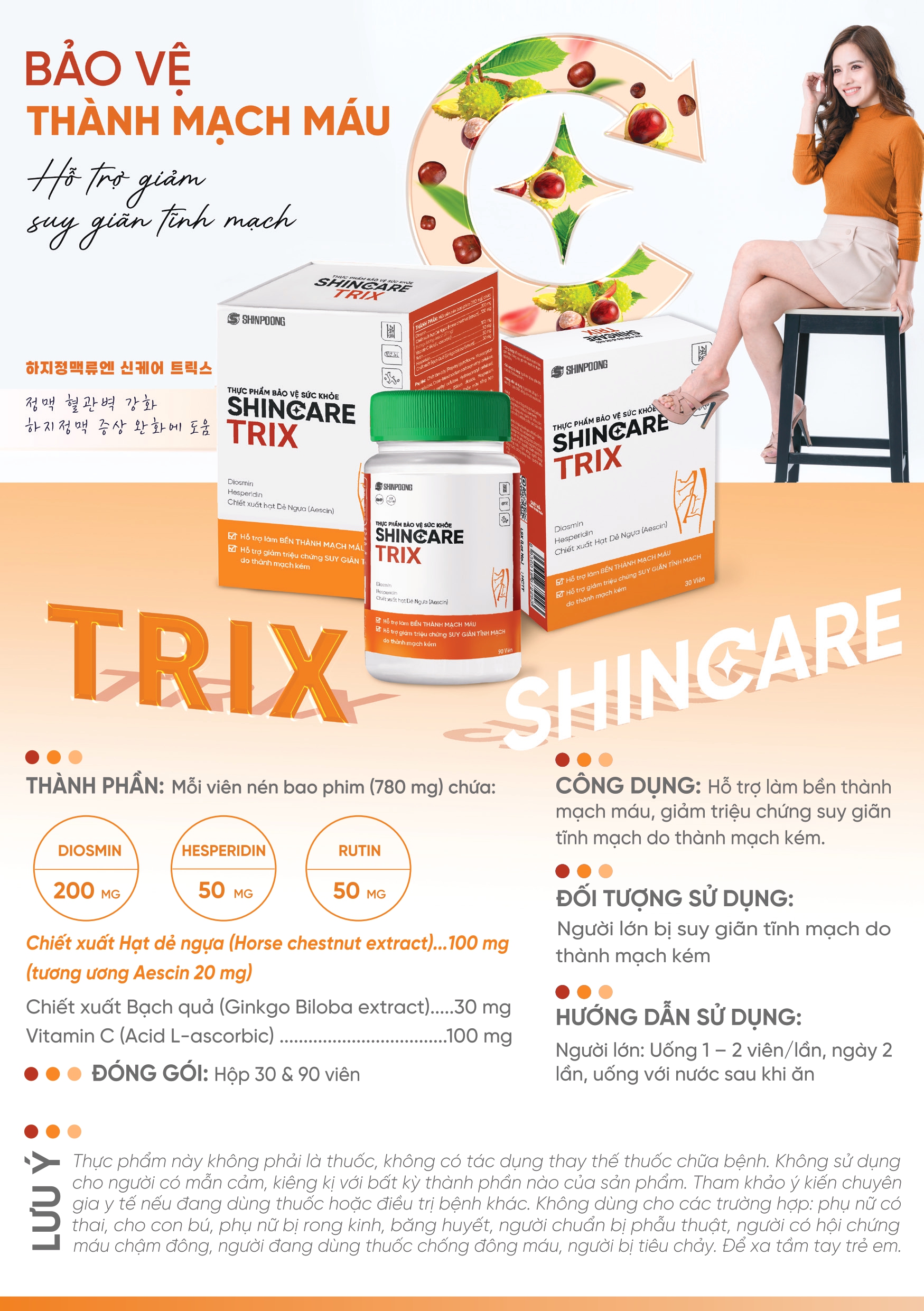 [Hộp 30 viên] Viên Uống SHINCARE TRIX - Hỗ trợ làm bền thành mạch máu, giảm triệu chứng suy giãn tĩnh mạch do thành mạch kém - SHINPOONG PHARMA