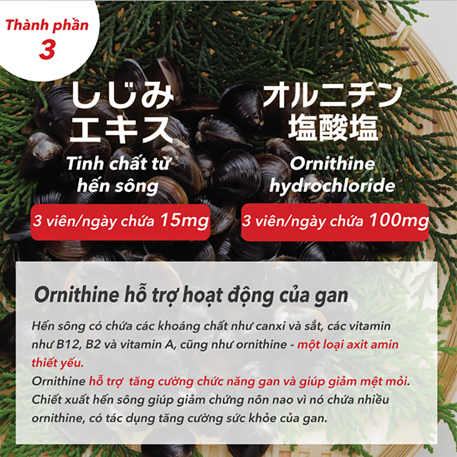 - Ornithine: Giúp cơ thể giảm thiểu mệt mỏi.