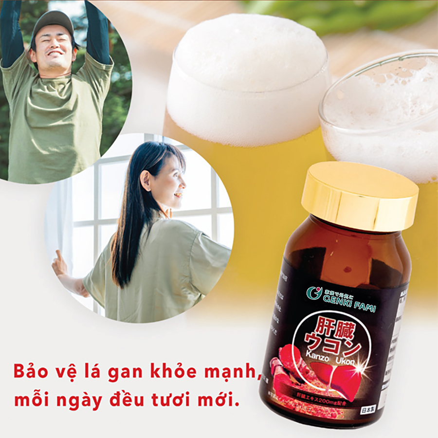 Viên Uống Thải Độc, Mát Gan, Giúp Giảm Căng Thẳng Mệt Mỏi Kanzo Ukon Genki Fami Nhật Bản