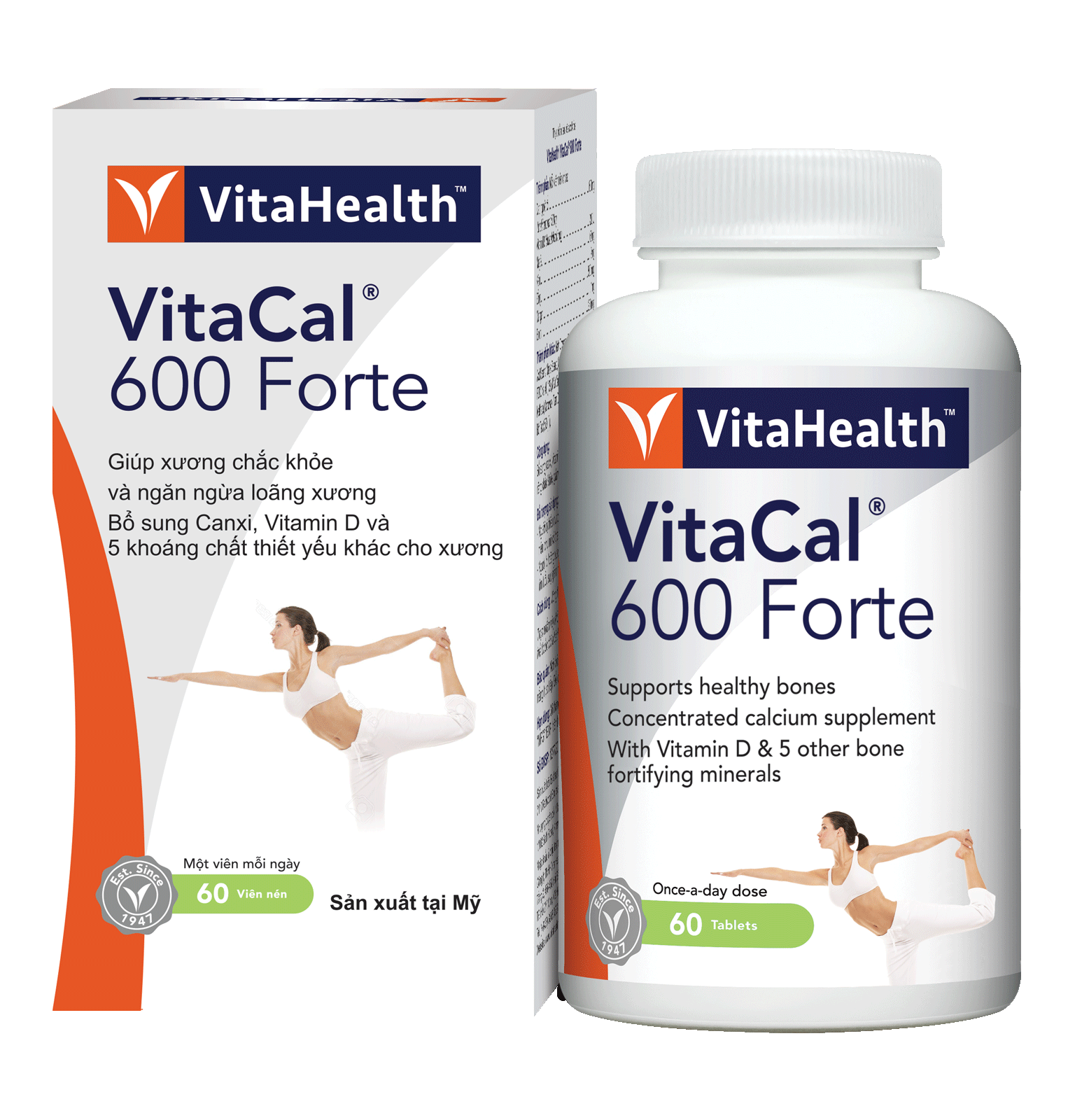 - VitaCal 600 Forte bổ sung canxi là khoáng chất chính trong xương, tăng cường sản sinh tế bào xương mới giúp xương chắc khỏe.
