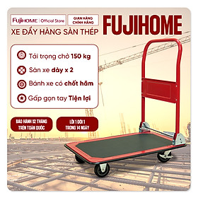 Xe đẩy hàng 4 bánh gấp gọn sàn thép FUJIHOME nhập khẩu, xe kéo hàng xếp gọn, bánh xe có chốt hãm - hàng chính hãng